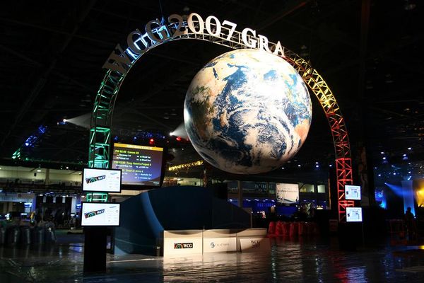 Поднявшись спозаранку, мы погрузились в комфортабельные автобусы, которые буквально через полчаса доставили нас до места проведения WCG. Стадион Qwestfield определённо оставляет в сознании четкий отпечаток, масштабы просто поражают! На входе в глаза сразу бросается огромная модель земного шара, окаймленная надписью “World Cyber Games”. Но засматриваться было некогда, ведь игры начинаются точно по расписанию, так что нужно было спешить на второй этаж, где расположилась огромнейшая игровая зона.